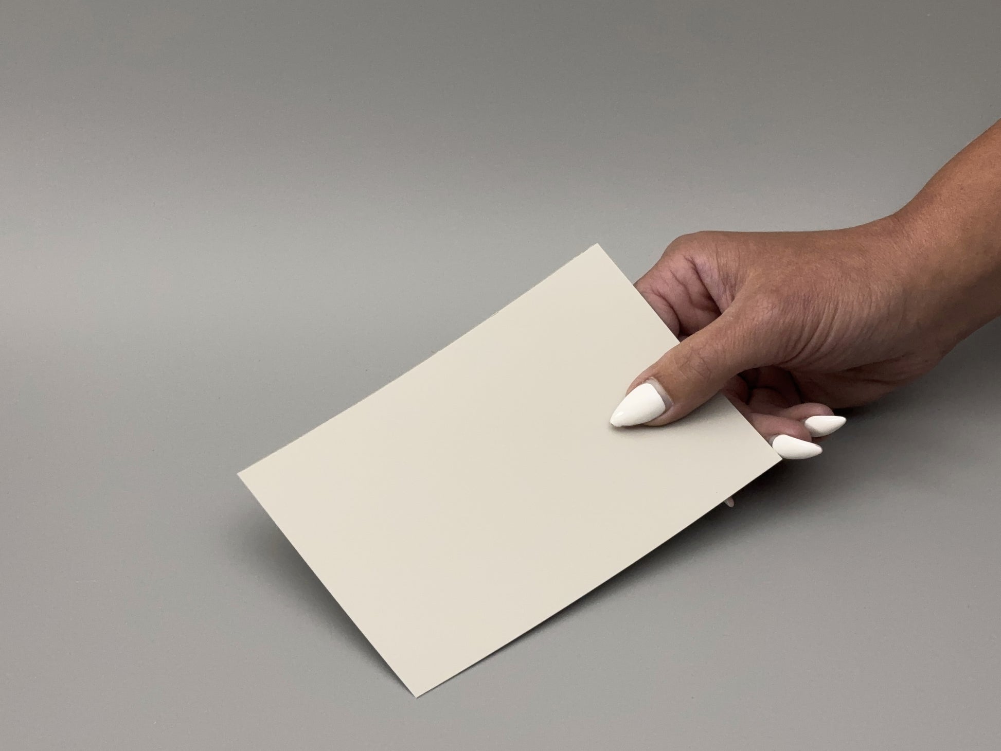 Echt-Farbtonmuster in DIN A6; zur finalen Bemusterung Zuhause.