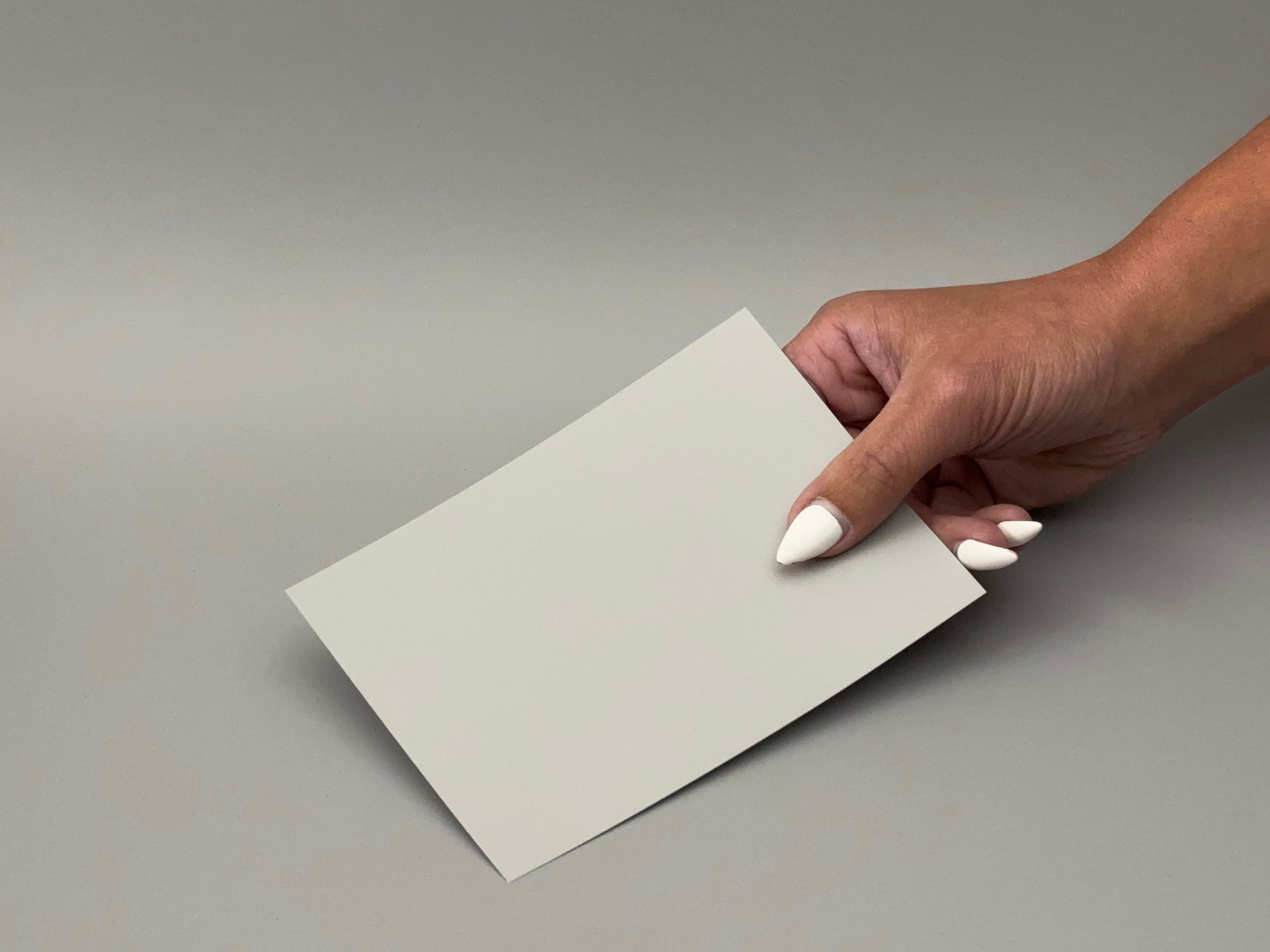 Echt-Farbtonmuster in DIN A6; zur finalen Bemusterung Zuhause.