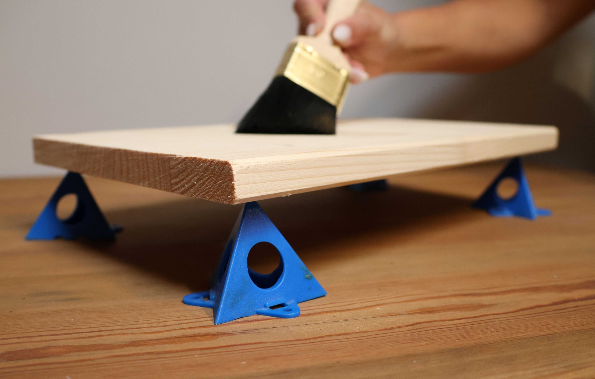 Diesen praktischen Helfer habt ihr wahrscheinlich bereits in unseren YouTube-Videos gesehen. Er erlaubt es, ein Brett von beiden Seiten zu lackieren, zu lasieren oder zu ölen, ohne dass die bereits bearbeitete Seite beim Ablegen durch die feinen Spitzen der Malerpyramide beschädigt wird.