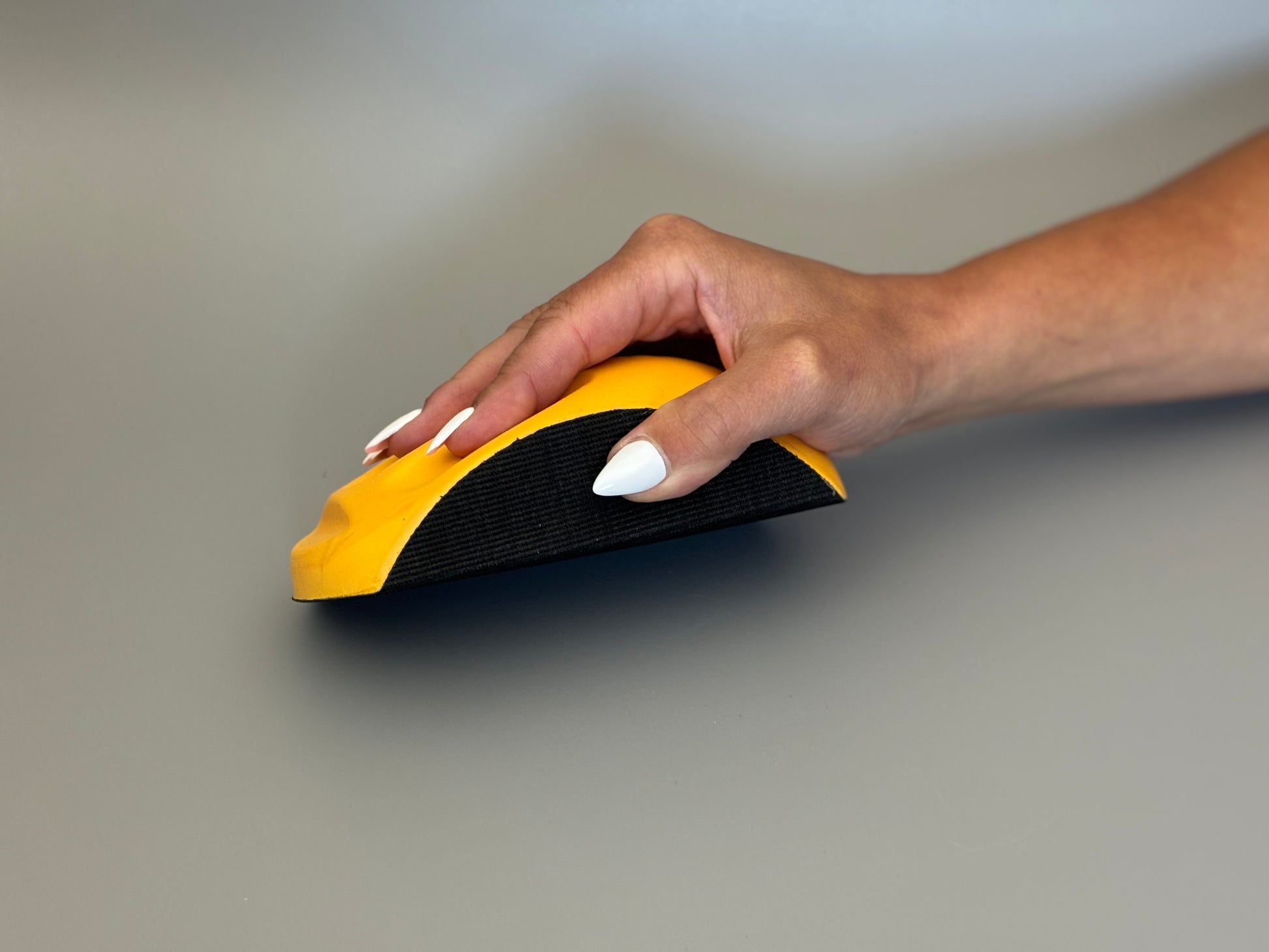 Das ist sicherlich der Mercedes unter den Schleifklötzen. Mit diesem Schleifklotz der Firma Mirka arbeiten wir neben den elektrischen Schleifmaschinen am meisten in unserer Werksstatt. Er liegt sehr gut in der Hand, man kann mit ihm lange ermüdungsfrei arbeiten und in Verbindung mit den Abranet Schleifgitterscheiben erzielt man mit ihm sehr gute Ergebnisse. Es werden runde Schleifscheiben mit einem Durchmesser von 150 mm zusätzlich benötigt. Sie werden mittels Klett am Schleifklotz befestigt. Passende Schleifscheiben gibt es im Shop. Benutzt beim Schleifen bitte eine Staubmaske, die ihr ebenfalls hier im Shop / Werkzeuge bekommt.