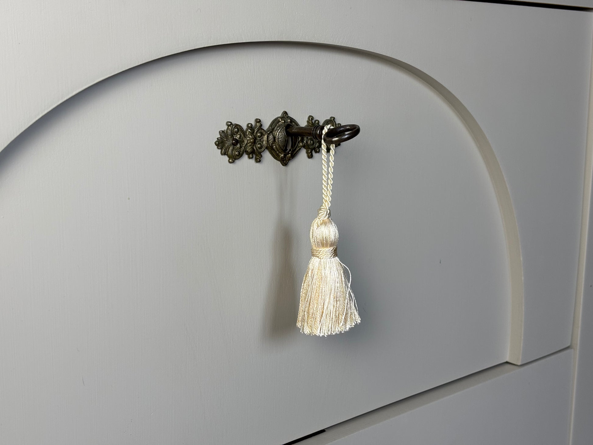 Stilvolles Accessoire für dein Möbel. Diese hochwertige Schlüsselquaste in edlem Champagnerton verleiht Möbelstücken eine harmonische und geschmackvolle Note. Sie passt zu allen Farbtönen, egal ob modernes Grau, edles Blau oder warmes Creme.