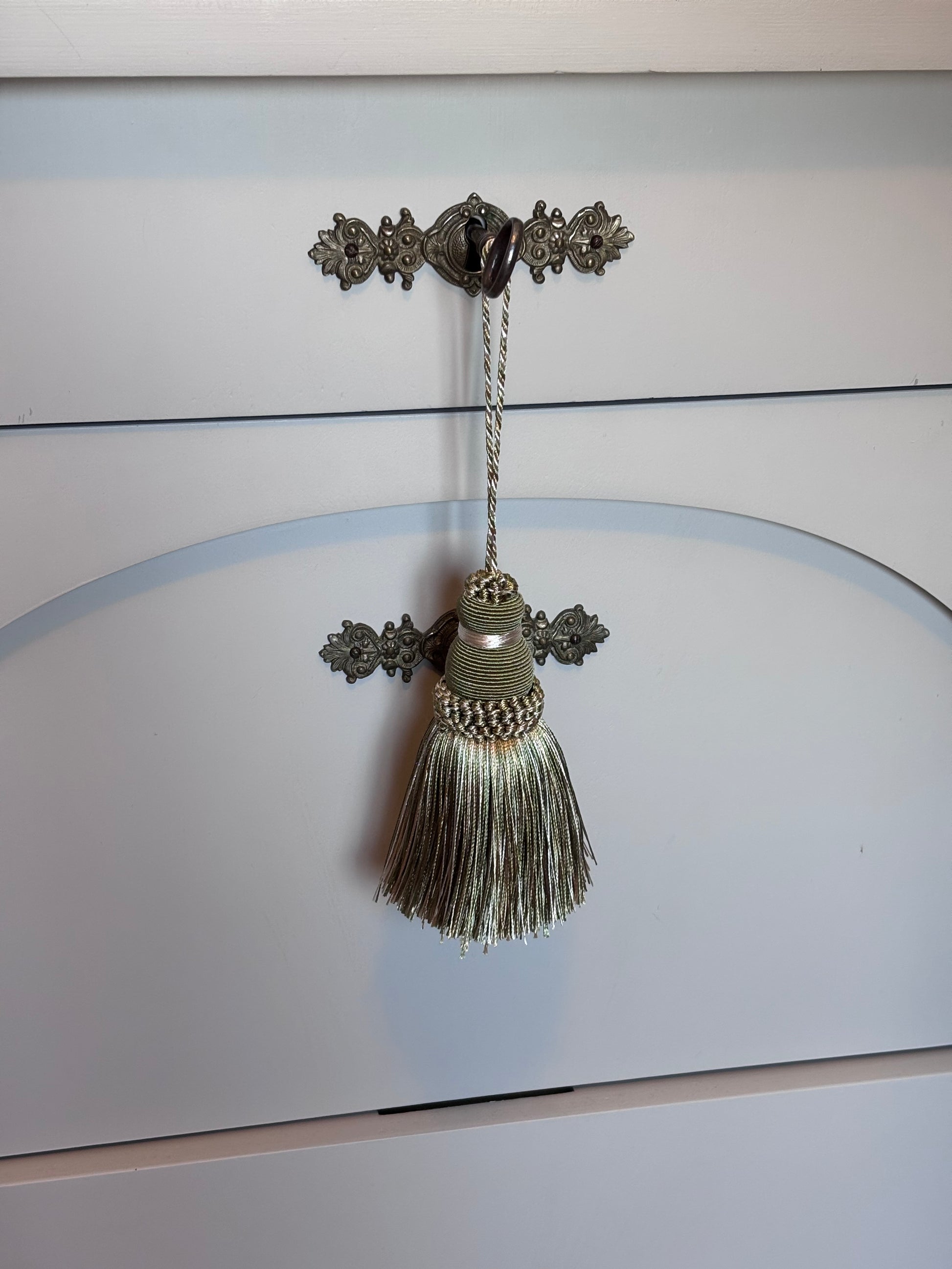 Stilvolles Accessoire für dein Möbel. Diese wunderschöne mehrfarbige grünliche Quaste hat eine Länge von ca. 23cm (mit Aufhängung) und einem Durchmesser von ca. 3,5cm.