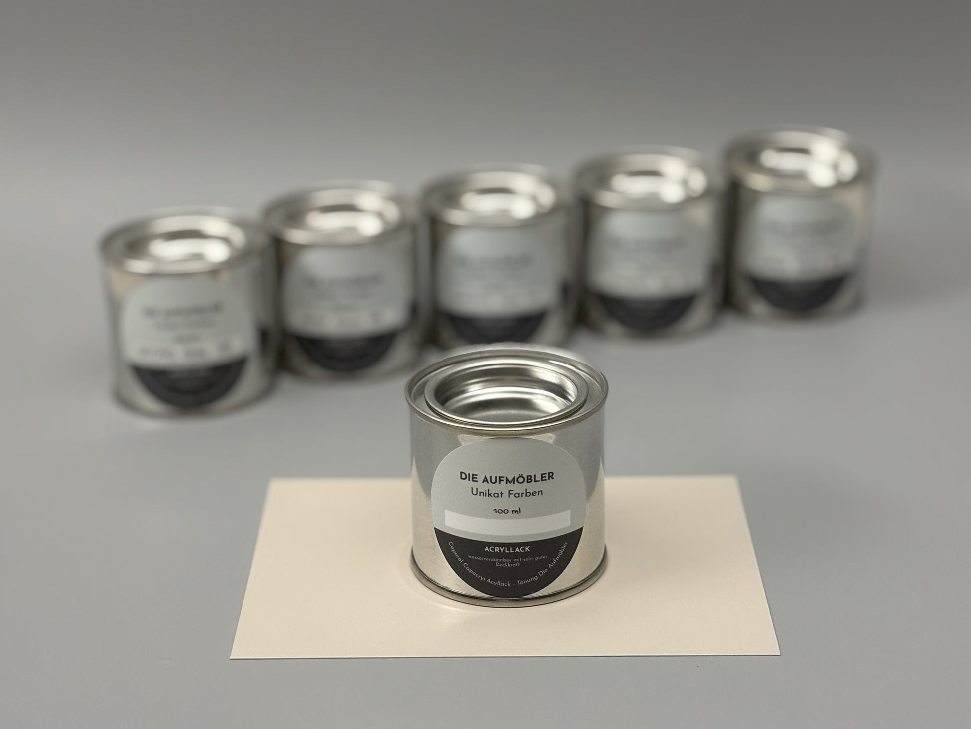 Unser matter Acryllack in der praktischen 100 ml Dose ist perfekt, um einen Probeanstrich zu machen und die endgültige Wirkung ganz entspannt bei dir Zuhause zu erleben.