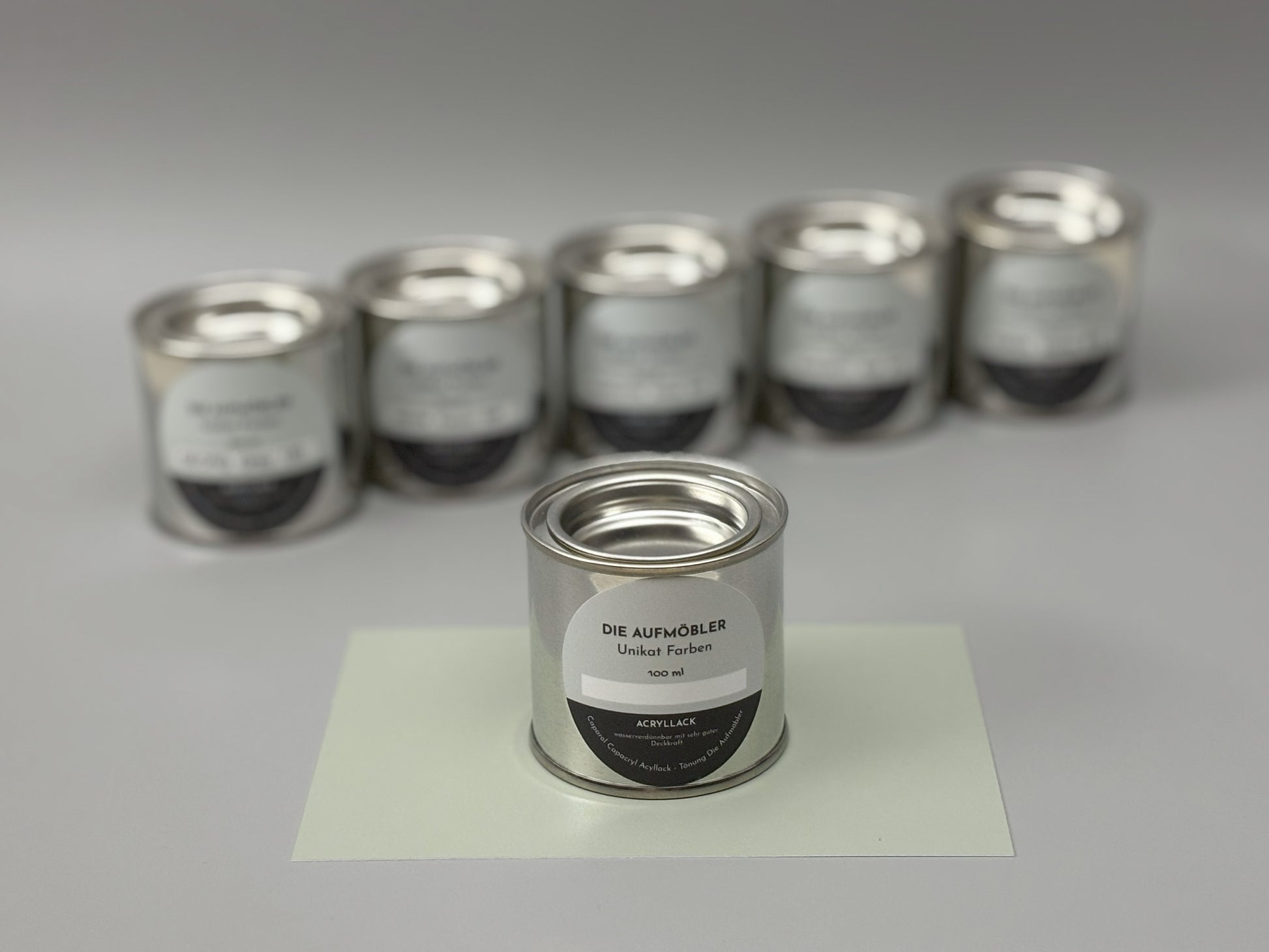 Unser matter Acryllack in der praktischen 100 ml Dose ist perfekt, um einen Probeanstrich zu machen und die endgültige Wirkung ganz entspannt bei dir Zuhause zu erleben.
