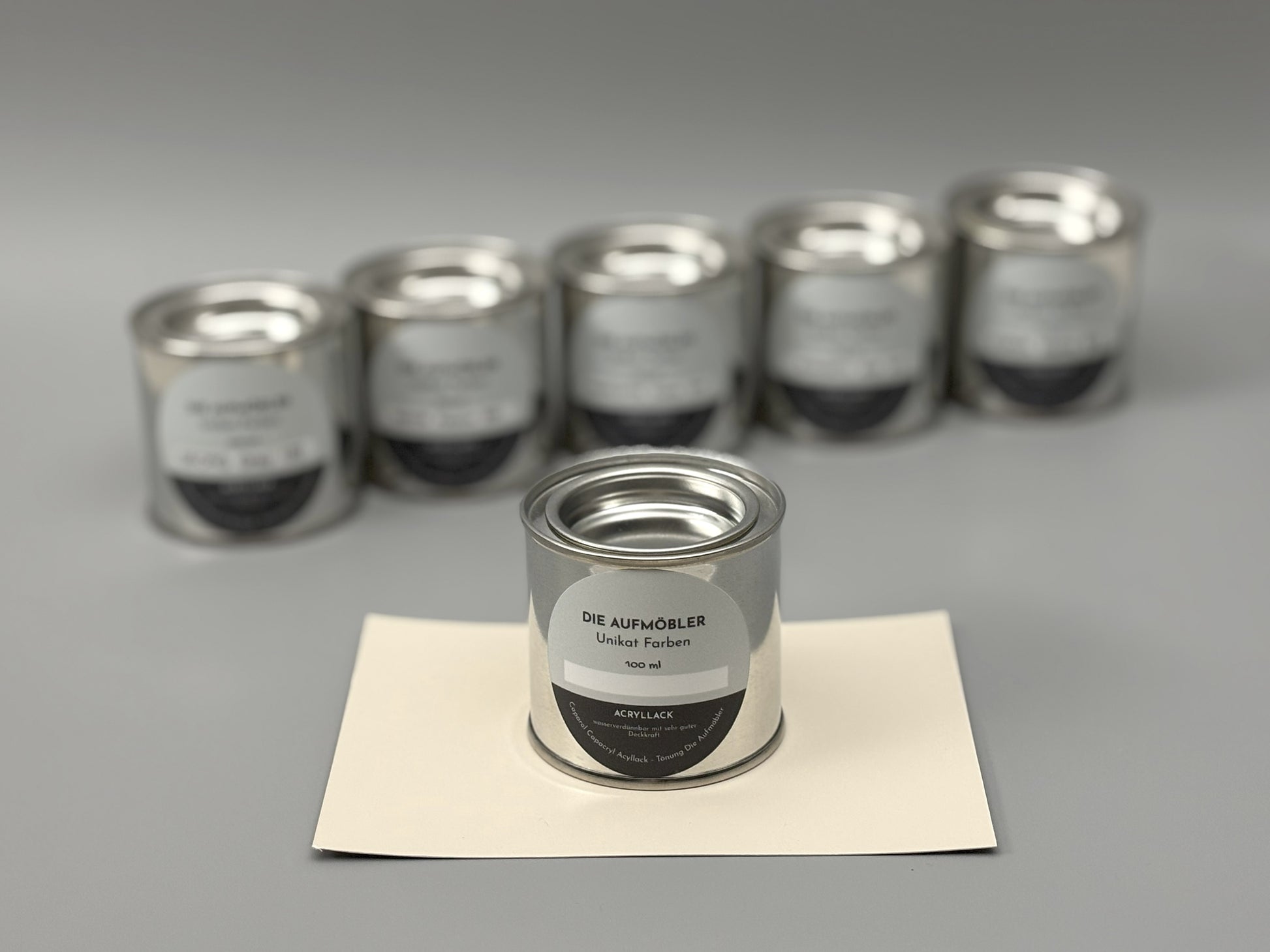 Unser matter Acryllack in der praktischen 100 ml Dose ist perfekt, um einen Probeanstrich zu machen und die endgültige Wirkung ganz entspannt bei dir Zuhause zu erleben.