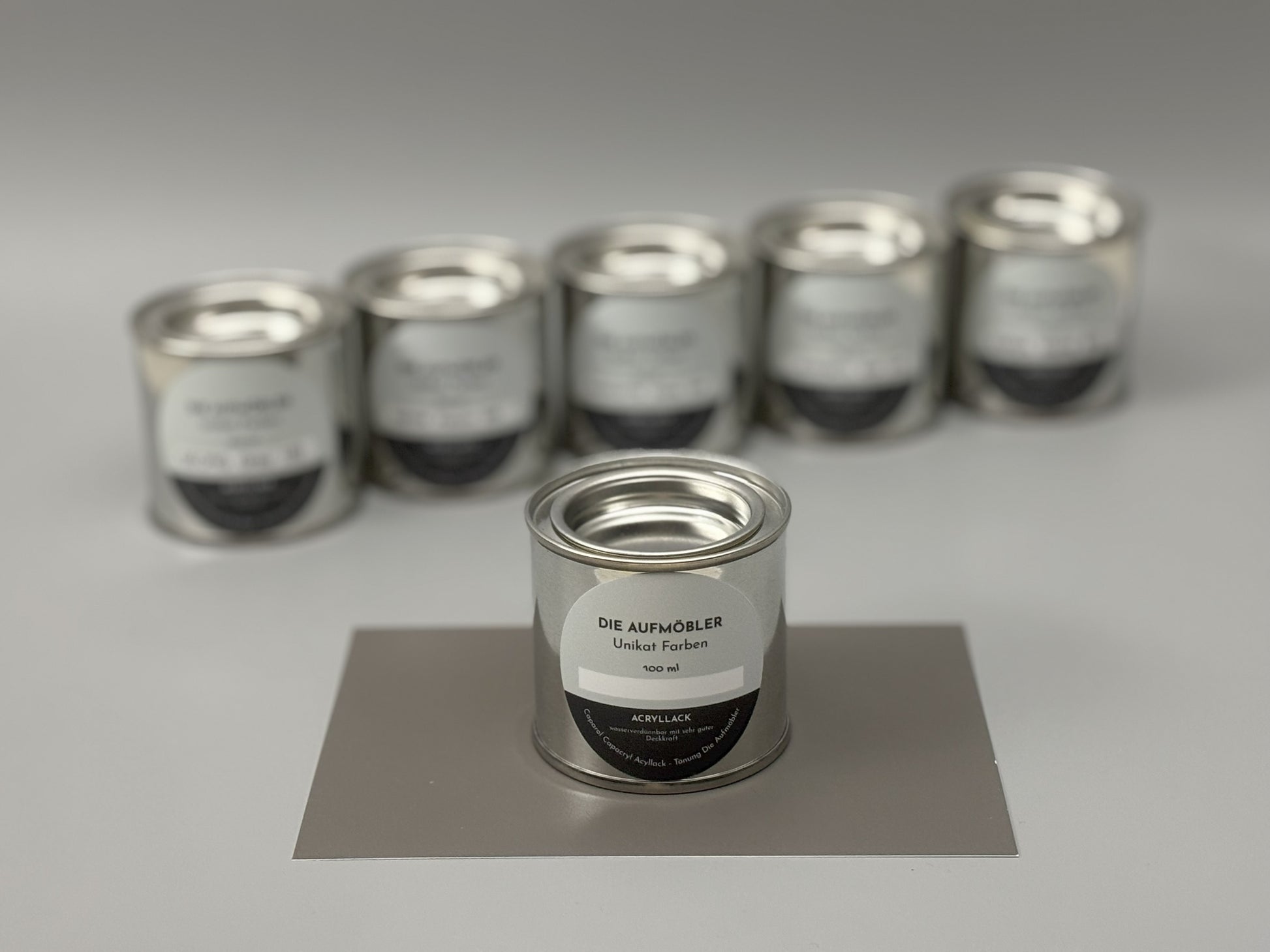 Unser matter Acryllack in der praktischen 100 ml Dose ist perfekt, um einen Probeanstrich zu machen und die endgültige Wirkung ganz entspannt bei dir Zuhause zu erleben.