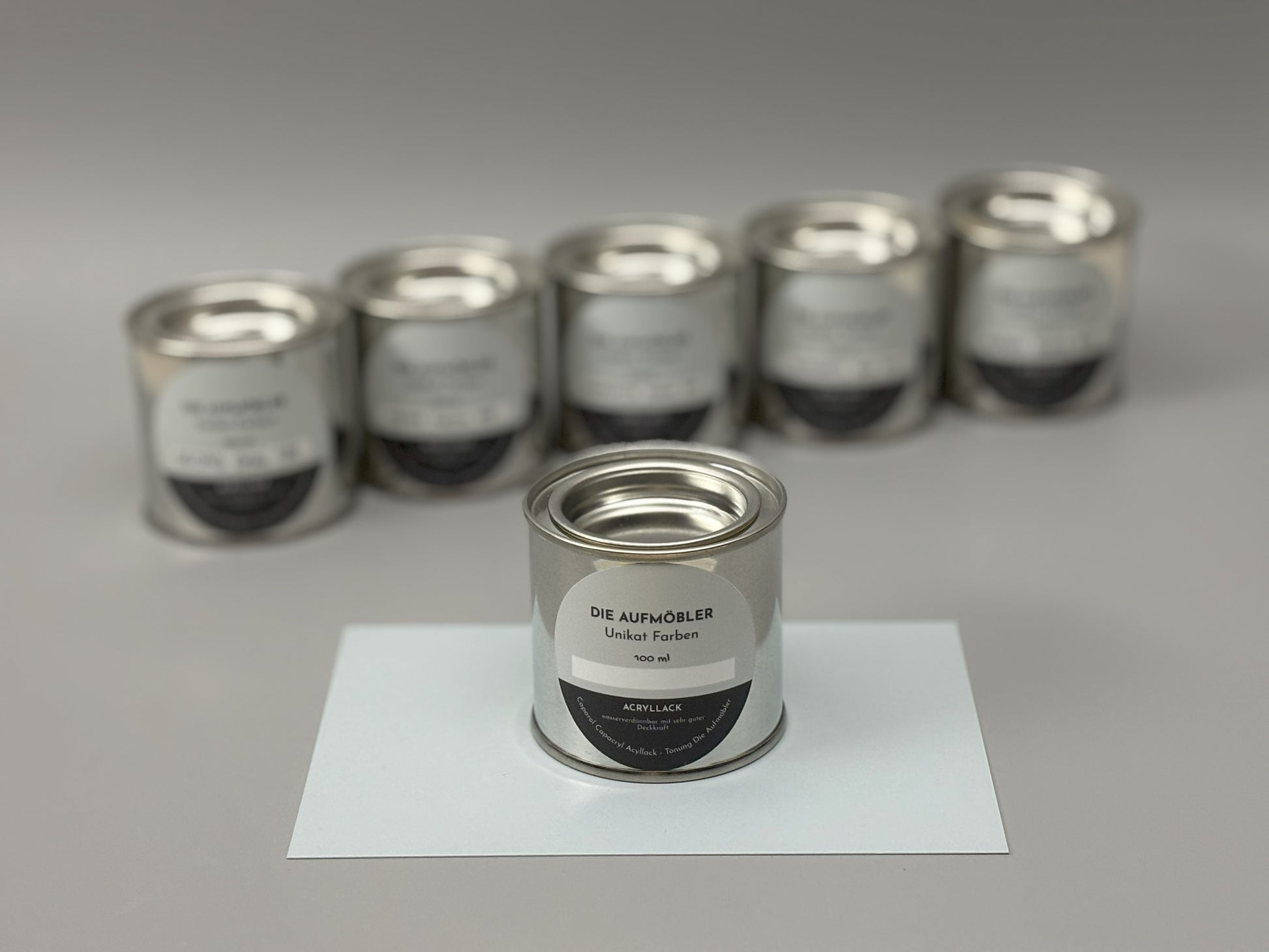 Unser matter Acryllack in der praktischen 100 ml Dose ist perfekt, um einen Probeanstrich zu machen und die endgültige Wirkung ganz entspannt bei dir Zuhause zu erleben.