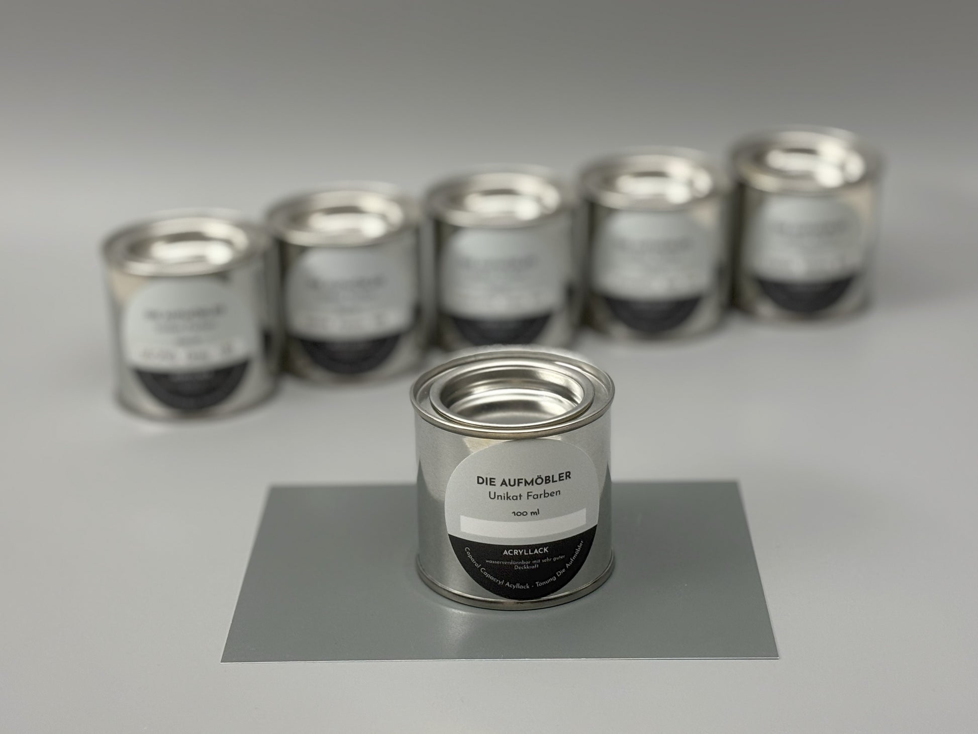 Unser matter Acryllack in der praktischen 100 ml Dose ist perfekt, um einen Probeanstrich zu machen und die endgültige Wirkung ganz entspannt bei dir Zuhause zu erleben.